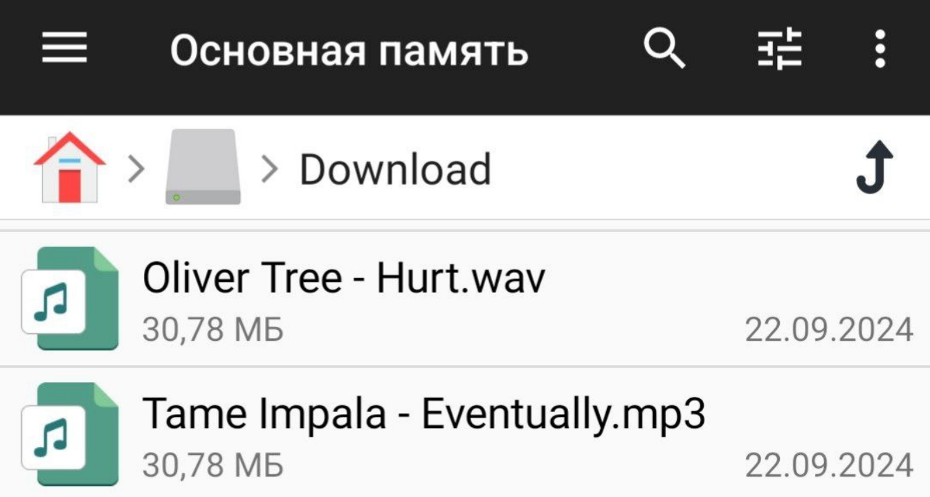 Запустите файловый проводник и перейдите в папку с музыкой на вашем устройстве.